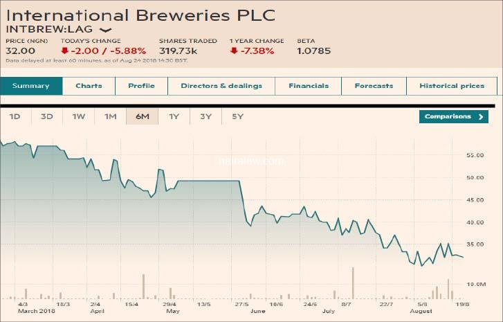 Trading data from the Nigerian Exchange showed that International Breweries’ share price has climbed to N13.35, still tracking behind its 52-week high of N16.2 ahead of Q1 earnings catalysts.