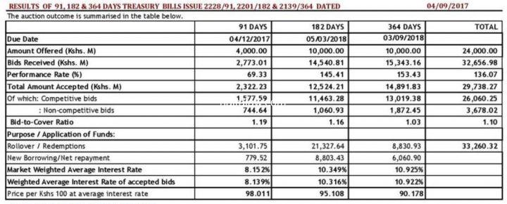 According to the fixed income market analysts’ update, the authority allocated Kenyan Treasury bills worth KES 24.53 billion from the bids received at the auction.