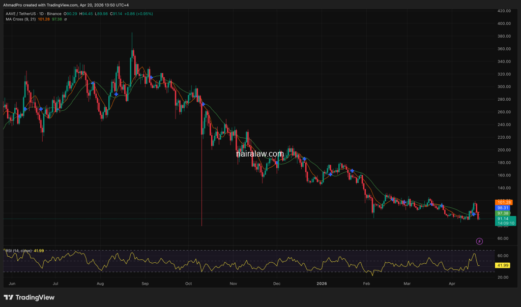 The honest answer: not easily. AAVE sits near $91 on major exchanges, down roughly 6% on Kraken in 24 hours and over 20% on the week, a significant deviation from the broader market’s comparatively mild -0.50% seven-day performance.