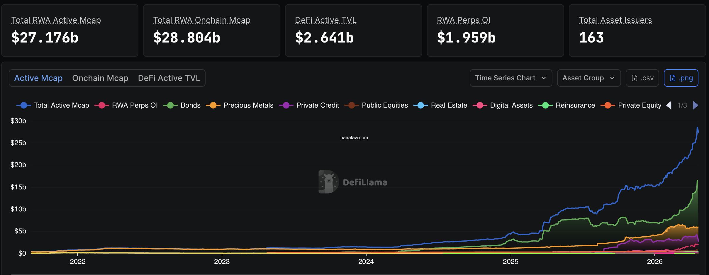 The broader tokenized real-world asset market now sits at over $29 billion on public blockchains, up more than 10% in the last 30 days, and grinding higher since it has been available.