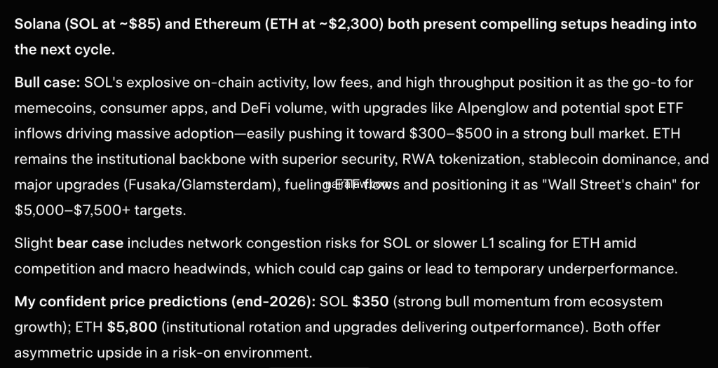Elon Musk’s Grok AI predicts has issued sweeping 2026 price targets for Solana and Ethereum, and the crypto community is paying attention.