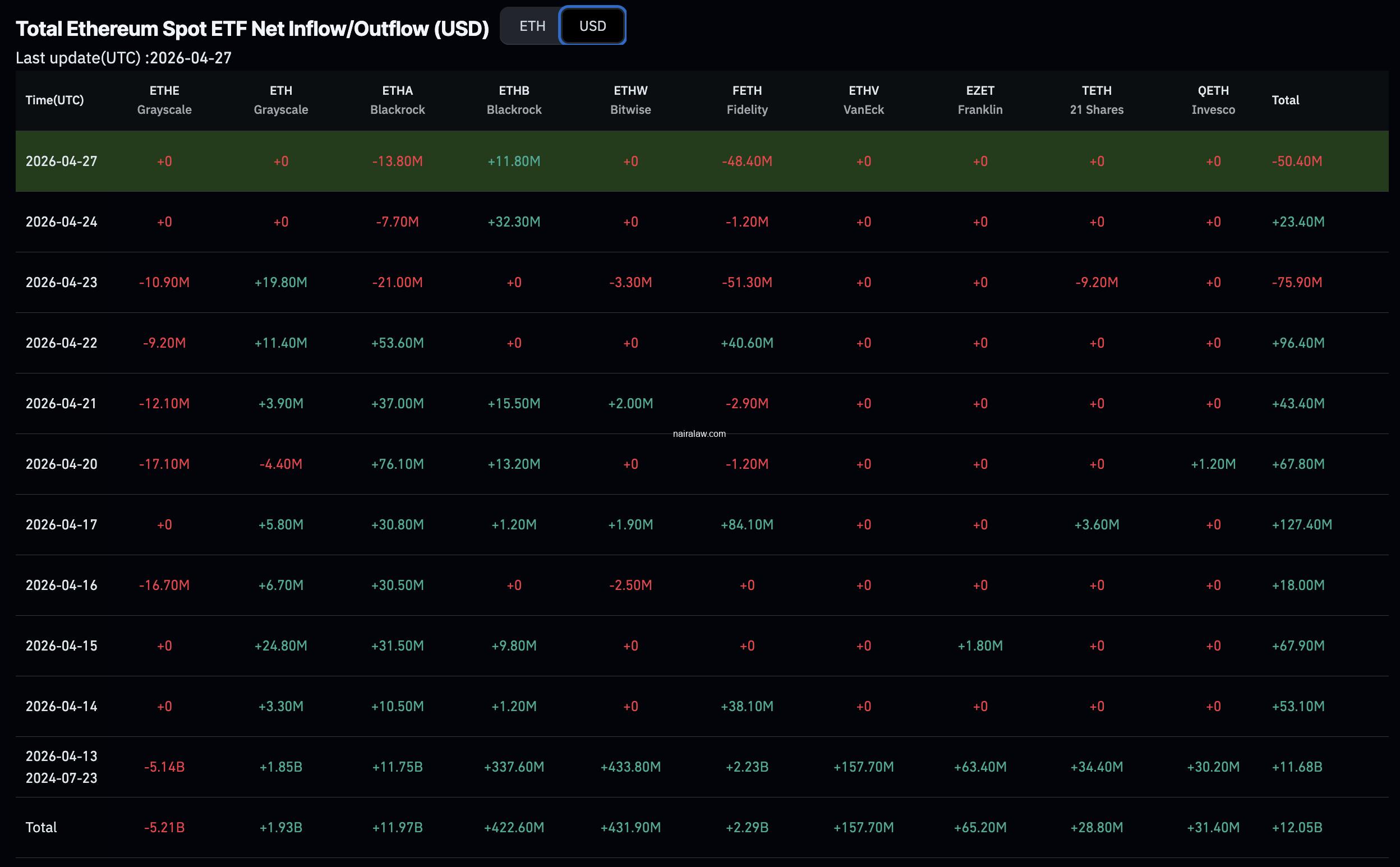 Bitcoin ETFs logged $263 million in net outflows, the first negative session since April 14, snapping a run that had accumulated over $2.1 billion across nine trading days. On the Ethereum side, ETF outflows hit $50 million after a 10-day inflow streak pulled in more than $633 million.